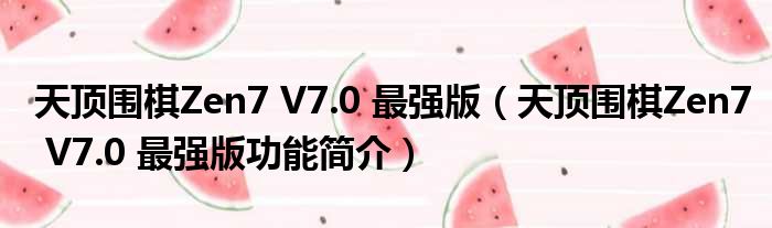 天顶围棋Zen7 V7.0 最强版(天顶围棋Zen7 V7.0 最强版功能简介)