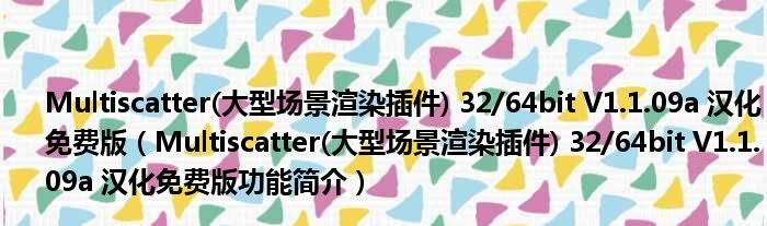 Multiscatter(大型场景渲染插件) 32/64bit V1.1.09a 汉化免费版(Multiscatter(大型场景渲染插件) 32/64bit V1.1.09a 汉化免费版功能简介)