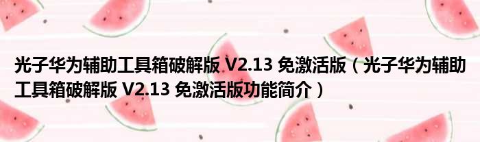光子华为辅助工具箱破解版 V2.13 免激活版(光子华为辅助工具箱破解版 V2.13 免激活版功能简介)