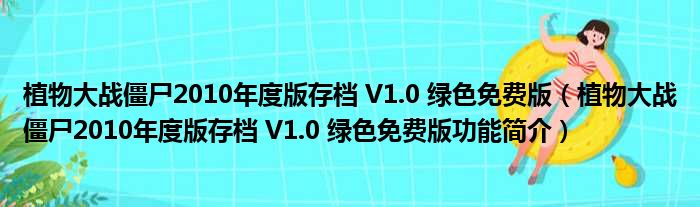 植物大战僵尸2010年度版存档 V1.0 绿色免费版(植物大战僵尸2010年度版存档 V1.0 绿色免费版功能简介)