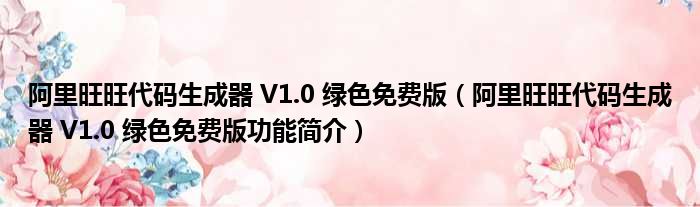 导读 大家好,关于阿里旺旺代码生成器 V1 0 绿色免费版,阿里旺旺代码生成器 V1 0 绿色免费版功能简介这个很多人还不知道,小勒来为大家解答以