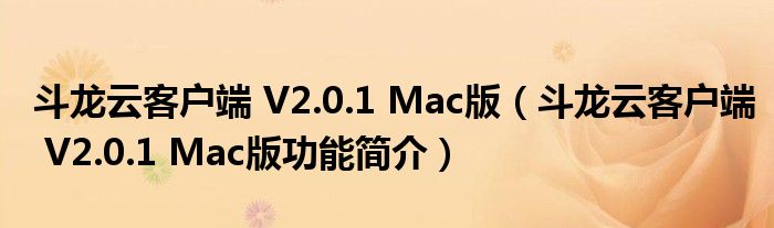 导读 大家好,关于斗龙云客户端 V2 0 1 Mac版,斗龙云客户端 V2 0 1 Mac版功能简介这个很多人还不知道,小勒来为大家解答以上的问题,现在让我