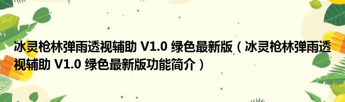 冰灵枪林弹雨透视辅助 V1.0 绿色最新版(冰灵枪林弹雨透视辅助 V1.0 绿色最新版功能简介)