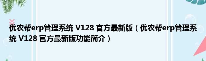 优农帮erp管理系统 V128 官方最新版(优农帮erp管理系统 V128 官方最新版功能简介)