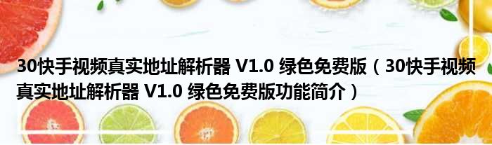 30快手视频真实地址解析器 V1.0 绿色免费版(30快手视频真实地址解析器 V1.0 绿色免费版功能简介)
