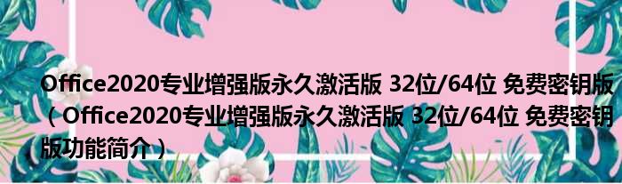 Office2020专业增强版永久激活版 32位/64位 免费密钥版(Office2020专业增强版永久激活版 32位/64位 免费密钥版功能简介)