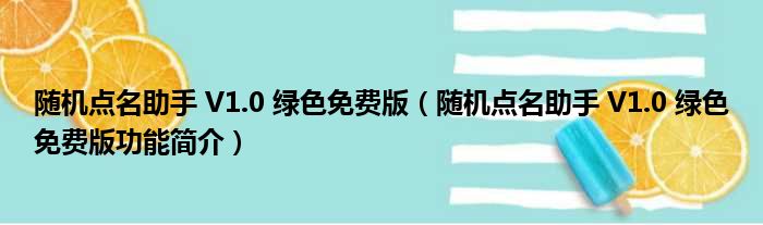 随机点名助手 V1.0 绿色免费版(随机点名助手 V1.0 绿色免费版功能简介)