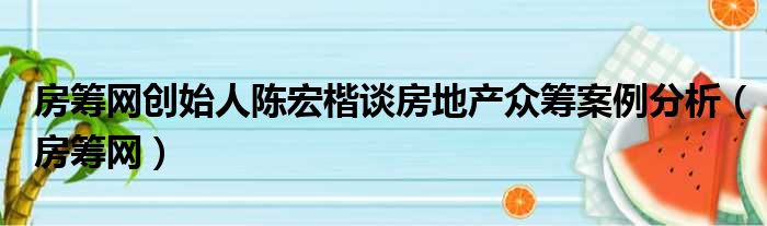 房筹网创始人陈宏楷谈房地产众筹案例分析(房筹网)