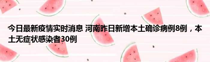 您的位置:首页 >动态频道 > 聚焦疫情 > 今日最新疫情实时消息 河南昨日新增本土确诊病例8例,本土无症状感染者30例 2022-10-09 20:04:08 • 来源: 导读 免责声明:本文由用户上传,如有侵权请联系删除! 上一篇:今日最新疫情实时消息 美国累计新冠肺炎确诊病例超9669万例 下一篇:今日最新疫情实时消息 10月9日0时至12时,山东济南新增本土确诊病例2例、本土无症状感染者1例