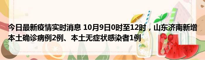 今日最新疫情实时消息 10月9日0时至12时,山东济南新增本土确诊病例2例、本土无症状感染者1例