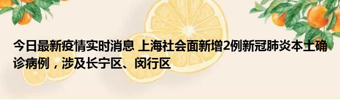 今日最新疫情实时消息 上海社会面新增2例新冠肺炎本土确诊病例,涉及长宁区、闵行区