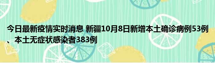 今日最新疫情实时消息 新疆10月8日新增本土确诊病例53例、本土无症状感染者383例