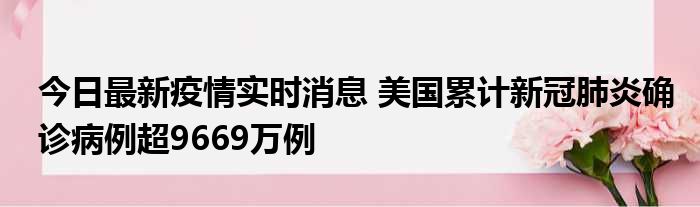 您的位置:首页 >动态频道 > 聚焦疫情 > 今日最新疫情实时消息 美国累计新冠肺炎确诊病例超9669万例 2022-10-10 00:54:08 • 来源: 导读 免责声明:本文由用户上传,如有侵权请联系删除! 上一篇:今日最新疫情实时消息 新疆10月8日新增本土确诊病例53例、本土无症状感染者383例 下一篇:今日最新疫情实时消息 上海社会面新增2例本土确诊病例,涉及蹦床公园、学校等地