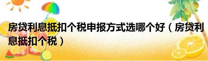 房贷利息抵扣个税申报方式选哪个好(房贷利息抵扣个税)
