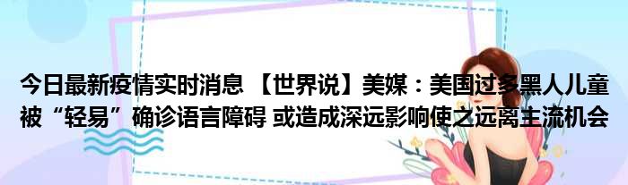 您的位置:首页 >动态频道 > 聚焦疫情 > 今日最新疫情实时消息 【世界说】美媒:美国过多黑人儿童被“轻易”确诊语言障碍 或造成深远影响使之远离主流机会 2022-10-10 03:54:09 • 来源: 导读 免责声明:本文由用户上传,如有侵权请联系删除! 上一篇:今日最新疫情实时消息 河南昨日新增本土确诊病例8例,本土无症状感染者30例 下一篇:今日最新疫情实时消息 北京通州新增1例确诊病例,主要风险点位公布,已划定中、低风险区