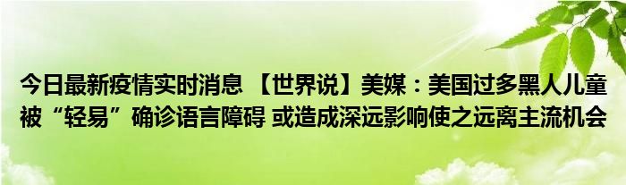 您的位置:首页 >动态频道 > 聚焦疫情 > 今日最新疫情实时消息 【世界说】美媒:美国过多黑人儿童被“轻易”确诊语言障碍 或造成深远影响使之远离主流机会 2022-10-10 05:46:07 • 来源: 导读 免责声明:本文由用户上传,如有侵权请联系删除! 上一篇:今日最新疫情实时消息 上海社会面新增2例新冠肺炎本土确诊病例,涉及长宁区、闵行区 下一篇:今日最新疫情实时消息 北京通州新增1例确诊病例,主要风险点位公布,已划定中、低风险区
