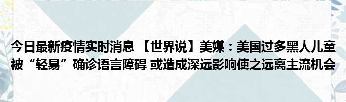 您的位置:首页 >动态频道 > 聚焦疫情 > 今日最新疫情实时消息 【世界说】美媒:美国过多黑人儿童被“轻易”确诊语言障碍 或造成深远影响使之远离主流机会 2022-10-10 07:42:07 • 来源: 导读 免责声明:本文由用户上传,如有侵权请联系删除! 上一篇:今日最新疫情实时消息 上海社会面新增2例新冠肺炎本土确诊病例,涉及长宁区、闵行区 下一篇:今日最新疫情实时消息 北京通州新增1例确诊病例,主要风险点位公布,已划定中、低风险区