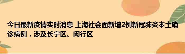 今日最新疫情实时消息 上海社会面新增2例新冠肺炎本土确诊病例,涉及长宁区、闵行区