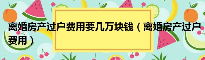 离婚房产过户费用要几万块钱(离婚房产过户费用)