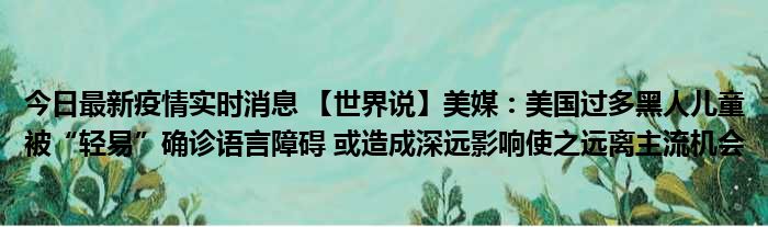您的位置:首页 >动态频道 > 聚焦疫情 > 今日最新疫情实时消息 【世界说】美媒:美国过多黑人儿童被“轻易”确诊语言障碍 或造成深远影响使之远离主流机会 2022-10-10 08:22:07 • 来源: 导读 免责声明:本文由用户上传,如有侵权请联系删除! 上一篇:今日最新疫情实时消息 上海社会面新增2例新冠肺炎本土确诊病例,涉及长宁区、闵行区 下一篇:今日最新疫情实时消息 北京通州新增1例确诊病例,主要风险点位公布,已划定中、低风险区