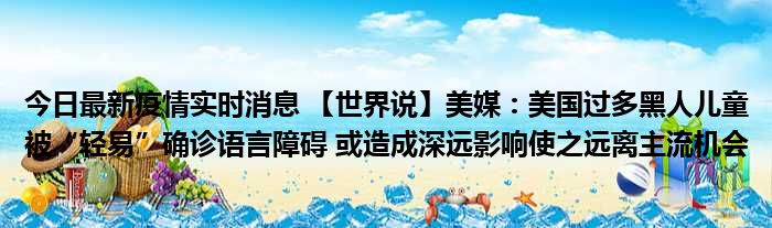 您的位置:首页 >动态频道 > 聚焦疫情 > 今日最新疫情实时消息 【世界说】美媒:美国过多黑人儿童被“轻易”确诊语言障碍 或造成深远影响使之远离主流机会 2022-10-10 10:04:06 • 来源: 导读 免责声明:本文由用户上传,如有侵权请联系删除! 上一篇:今日最新疫情实时消息 上海社会面新增2例新冠肺炎本土确诊病例,涉及长宁区、闵行区 下一篇:今日最新疫情实时消息 北京通州新增1例确诊病例,主要风险点位公布,已划定中、低风险区