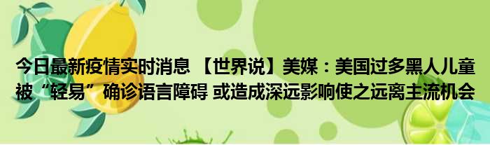 您的位置:首页 >动态频道 > 聚焦疫情 > 今日最新疫情实时消息 【世界说】美媒:美国过多黑人儿童被“轻易”确诊语言障碍 或造成深远影响使之远离主流机会 2022-10-10 10:34:06 • 来源: 导读 免责声明:本文由用户上传,如有侵权请联系删除! 上一篇:今日最新疫情实时消息 上海社会面新增2例新冠肺炎本土确诊病例,涉及长宁区、闵行区 下一篇:今日最新疫情实时消息 北京通州新增1例确诊病例,主要风险点位公布,已划定中、低风险区