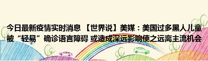 您的位置:首页 >动态频道 > 聚焦疫情 > 今日最新疫情实时消息 【世界说】美媒:美国过多黑人儿童被“轻易”确诊语言障碍 或造成深远影响使之远离主流机会 2022-10-10 11:24:08 • 来源: 导读 免责声明:本文由用户上传,如有侵权请联系删除! 上一篇:今日最新疫情实时消息 上海社会面新增2例新冠肺炎本土确诊病例,涉及长宁区、闵行区 下一篇:今日最新疫情实时消息 北京通州新增1例确诊病例,主要风险点位公布,已划定中、低风险区