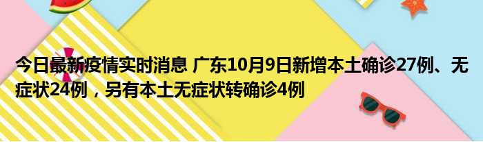 今日最新疫情实时消息 广东10月9日新增本土确诊27例、无症状24例,另有本土无症状转确诊4例