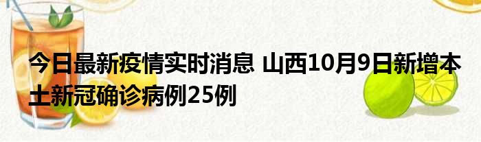 导读 山西卫健委通报,2022年10月9日0-24时,山西省新增本土新冠肺炎确诊病例25例(太原市迎泽区1例、太原市晋源区6例、晋中市祁县3例、晋中市
