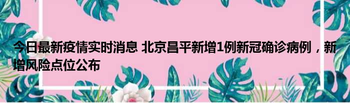今日最新疫情实时消息 北京昌平新增1例新冠确诊病例,新增风险点位公布