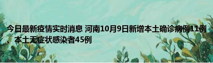 今日最新疫情实时消息 河南10月9日新增本土确诊病例11例、本土无症状感染者45例
