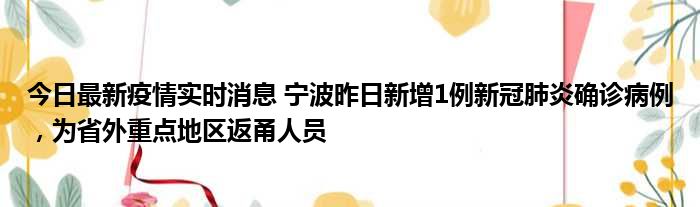 您的位置:首页 >动态频道 > 聚焦疫情 > 今日最新疫情实时消息 宁波昨日新增1例新冠肺炎确诊病例,为省外重点地区返甬人员 2022-10-10 15:04:09 • 来源: 导读 免责声明:本文由用户上传,如有侵权请联系删除! 上一篇:今日最新疫情实时消息 海南10月9日新增本土确诊病例3例 下一篇:今日最新疫情实时消息 北京昌平新增1例新冠确诊病例,新增风险点位公布