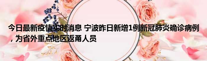 您的位置:首页 >动态频道 > 聚焦疫情 > 今日最新疫情实时消息 宁波昨日新增1例新冠肺炎确诊病例,为省外重点地区返甬人员 2022-10-10 15:24:07 • 来源: 导读 免责声明:本文由用户上传,如有侵权请联系删除! 上一篇:今日最新疫情实时消息 四川泸州:10月9日合江县新增本土确诊1例,叙永县新增本土无症状28例 下一篇:今日最新疫情实时消息 广东10月9日新增本土确诊27例、无症状24例,另有本土无症状转确诊4例