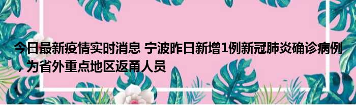 您的位置:首页 >动态频道 > 聚焦疫情 > 今日最新疫情实时消息 宁波昨日新增1例新冠肺炎确诊病例,为省外重点地区返甬人员 2022-10-10 15:44:08 • 来源: 导读 免责声明:本文由用户上传,如有侵权请联系删除! 上一篇:今日最新疫情实时消息 四川泸州:10月9日合江县新增本土确诊1例,叙永县新增本土无症状28例 下一篇:今日最新疫情实时消息 广东10月9日新增本土确诊27例、无症状24例,另有本土无症状转确诊4例