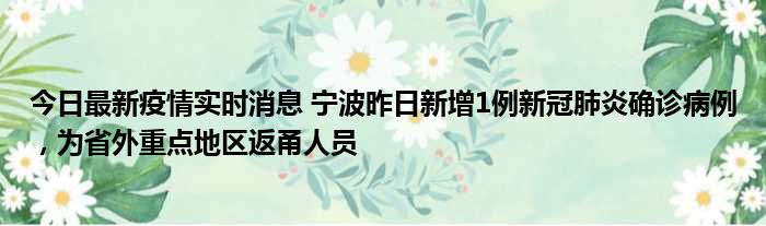 您的位置:首页 >动态频道 > 聚焦疫情 > 今日最新疫情实时消息 宁波昨日新增1例新冠肺炎确诊病例,为省外重点地区返甬人员 2022-10-10 16:14:07 • 来源: 导读 免责声明:本文由用户上传,如有侵权请联系删除! 上一篇:今日最新疫情实时消息 四川泸州:10月9日合江县新增本土确诊1例,叙永县新增本土无症状28例 下一篇:今日最新疫情实时消息 广东10月9日新增本土确诊27例、无症状24例,另有本土无症状转确诊4例