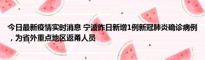 您的位置:首页 >动态频道 > 聚焦疫情 > 今日最新疫情实时消息 宁波昨日新增1例新冠肺炎确诊病例,为省外重点地区返甬人员 2022-10-10 16:44:06 • 来源: 导读 免责声明:本文由用户上传,如有侵权请联系删除! 上一篇:今日最新疫情实时消息 四川泸州:10月9日合江县新增本土确诊1例,叙永县新增本土无症状28例 下一篇:今日最新疫情实时消息 广东10月9日新增本土确诊27例、无症状24例,另有本土无症状转确诊4例
