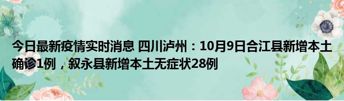今日最新疫情实时消息 四川泸州:10月9日合江县新增本土确诊1例,叙永县新增本土无症状28例