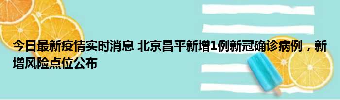 今日最新疫情实时消息 北京昌平新增1例新冠确诊病例,新增风险点位公布