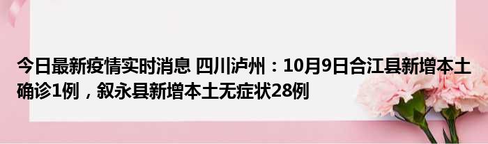 今日最新疫情实时消息 四川泸州:10月9日合江县新增本土确诊1例,叙永县新增本土无症状28例
