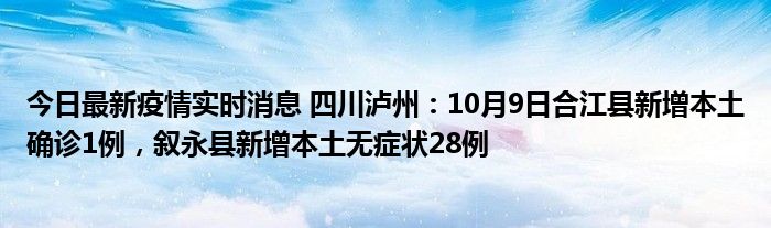 今日最新疫情实时消息 四川泸州:10月9日合江县新增本土确诊1例,叙永县新增本土无症状28例