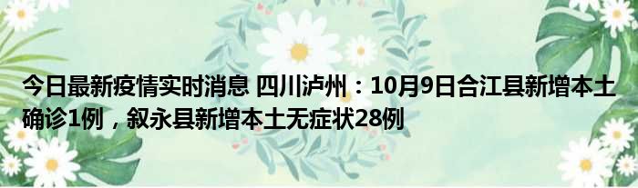 今日最新疫情实时消息 四川泸州:10月9日合江县新增本土确诊1例,叙永县新增本土无症状28例