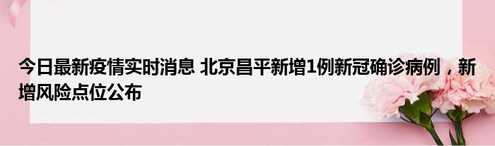 今日最新疫情实时消息 北京昌平新增1例新冠确诊病例,新增风险点位公布