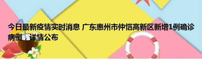 今日最新疫情实时消息 广东惠州市仲恺高新区新增1例确诊病例,详情公布
