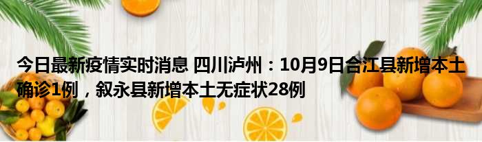 今日最新疫情实时消息 四川泸州:10月9日合江县新增本土确诊1例,叙永县新增本土无症状28例
