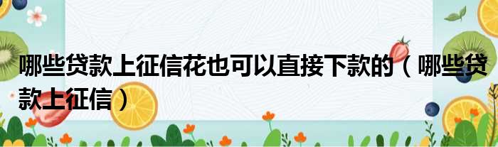 哪些贷款上征信花也可以直接下款的(哪些贷款上征信)