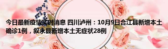 今日最新疫情实时消息 四川泸州:10月9日合江县新增本土确诊1例,叙永县新增本土无症状28例