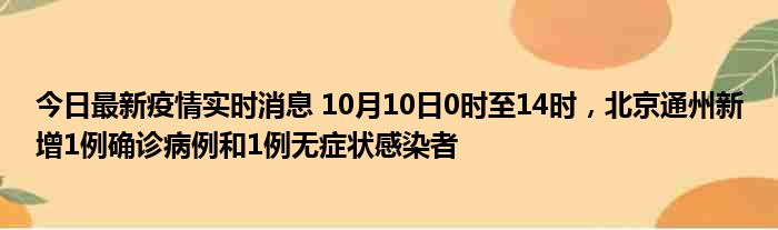 今日最新疫情实时消息 10月10日0时至14时,北京通州新增1例确诊病例和1例无症状感染者