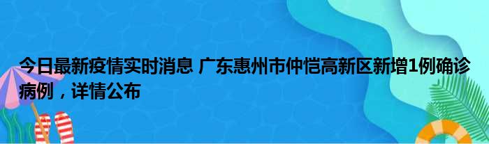 今日最新疫情实时消息 广东惠州市仲恺高新区新增1例确诊病例,详情公布