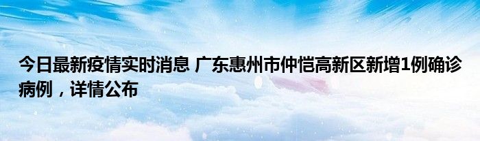 今日最新疫情实时消息 广东惠州市仲恺高新区新增1例确诊病例,详情公布