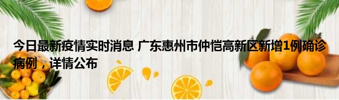 今日最新疫情实时消息 广东惠州市仲恺高新区新增1例确诊病例,详情公布